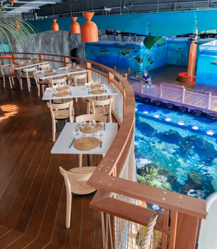 Ein Eintrittsticket für Nausicaá ist erforderlich, um Zugang zum Restaurant zu erhalten.