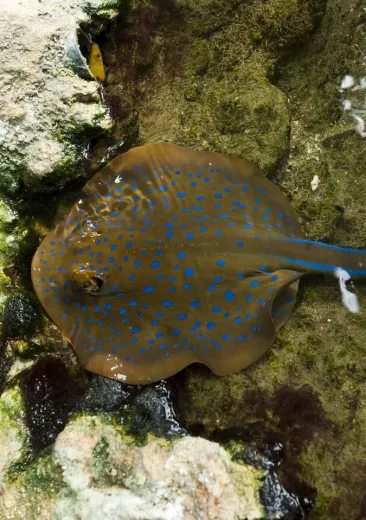 - Eine weitere Besonderheit ist, dass er einen Großteil seiner Zeit auf dem Meeresboden verbringt und nachts auf die Jagd geht. Dank seiner geringen Größe und seines flexiblen Körpers kann er sich durch die Ritzen des Riffs schlängeln, um kleine Knochenfische, Kopffüßer oder Krustentiere als Beute zu fangen.