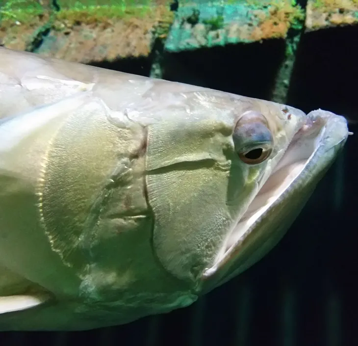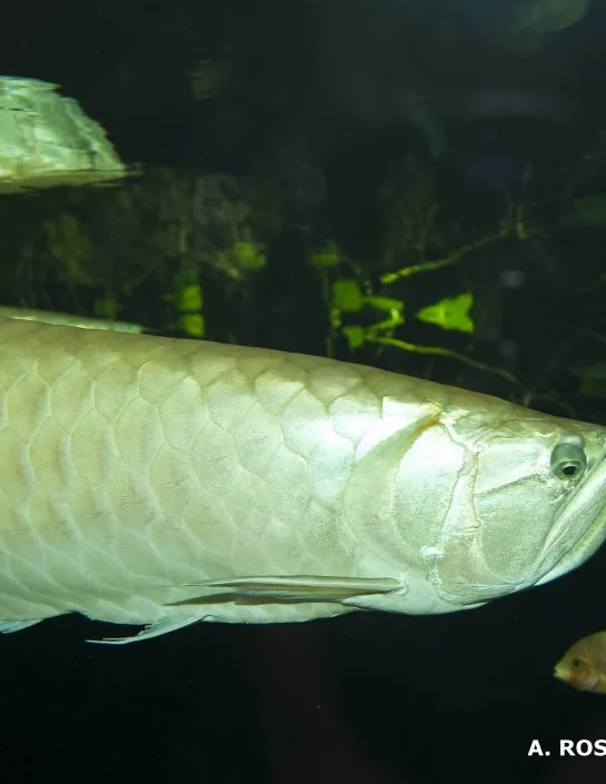 The arowana is omnivorous. It feeds mainly on small fish at the surface, but it also feeds on grasshoppers, ants and bee