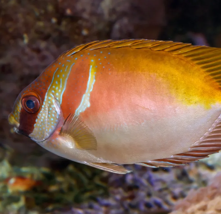 This rabbitfish owes its name to the two lines on its body: the first starts at the lip and crosses the eye. The second starts at the gill cover and reaches the back.