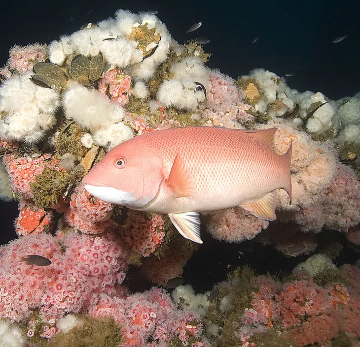 The California sheephead is found on rocky reefs, particularly where there are kelps. This fish tends to stay on the same reef and does not move around much.
