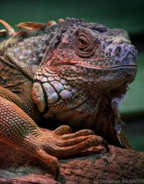 It measures between 10 and 30 cm. This species is oviparous. It is distinguished by its green colour and blue spots.