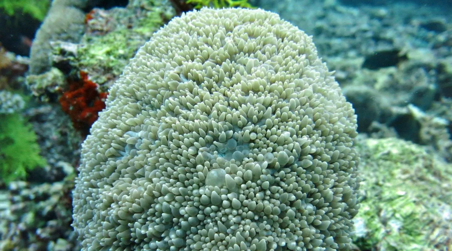 Bubble coral forms colonies that can grow up to 2 m in diameter. The coral is covered with vesicles that vary in colour from pale grey to green. These are more visible during the day and can retract when disturbed.