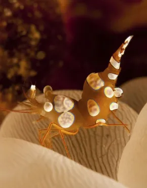 This shrimp is hermaphroditic, which means that it has both male and female organs. This shrimp is born male and then becomes female but still keeps functional male genitalia.
