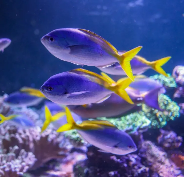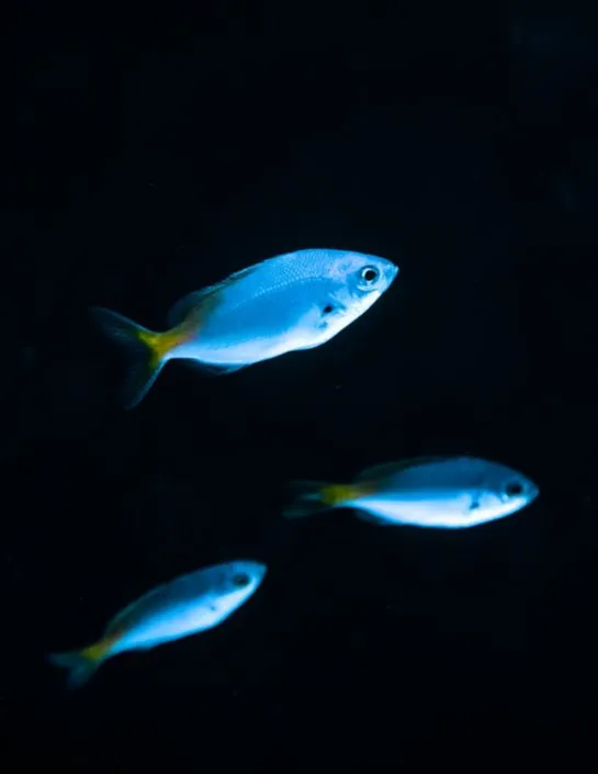 - The forked tail fin is typical of pelagic fish. It is yellow.