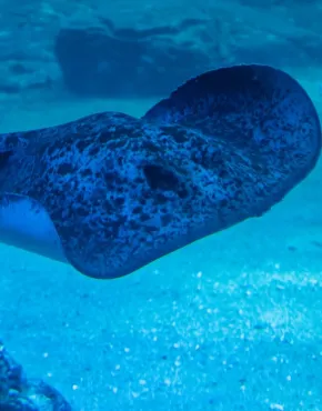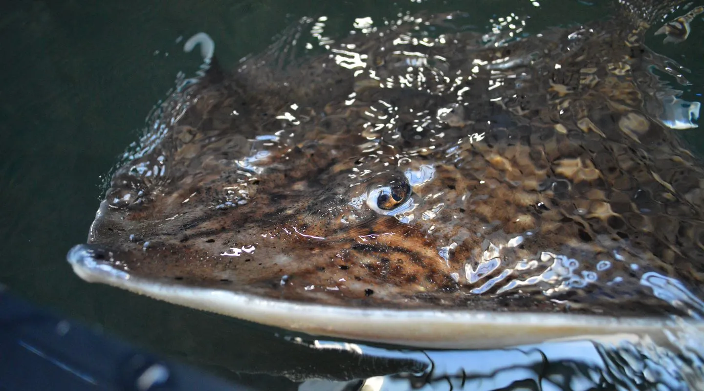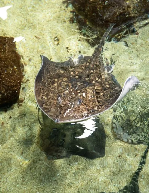 - It gets its name from the thorns on its dorsal side. It can grow up to 1.20 m long for females, 70 cm for males, and a width of 60 cm. It camouflages itself in the sand so that only its eyes are visible.