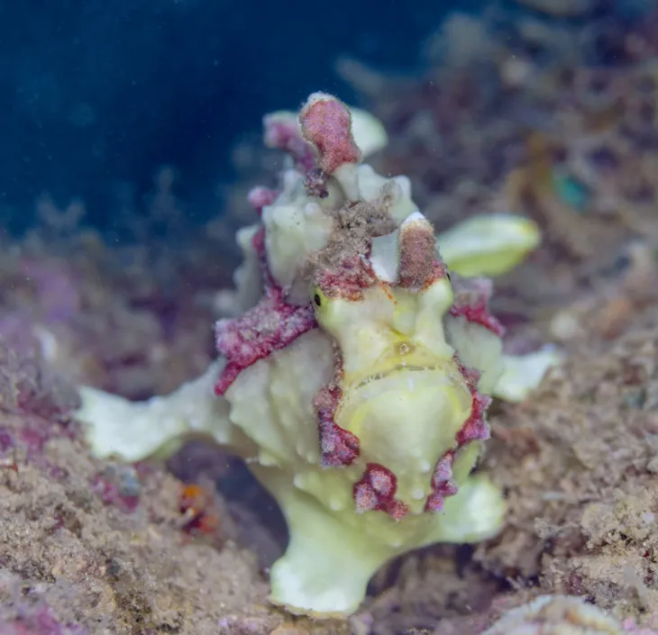 It uses its pectoral and pelvic fins to walk along the seabed rather than swim. It lives among seaweed and coral and uses its lure to attract prey.