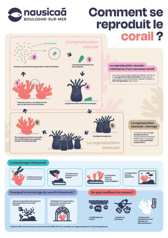 This technique involves taking a piece of coral from a mother plant and attaching it to a support so that it can grow. Again, this is cloning. Nausicaá's aquarists have mastered this technique and breed all the corals on display.