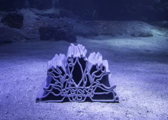 Inspired by the natural rocky bottoms, these patented structures offer living spaces for fish species, thus promoting the development of a greater marine biodiversity. 3D-printed using eco-responsible low-carbon concrete, they are designed to fit harmoniously into the marine environment.