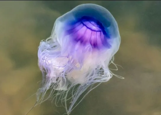 This mauve jellyfish, with a blue and pink bell, has the worst sting. Above all present in the warm waters of the Mediterranean, they can also be found in the Atlantic. With their 60cm-long tentacles, they can inflict painful burns on swimmers.