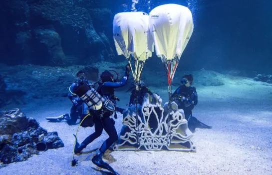Le 2 février dernier, 5 plongeurs de Nausicaá ont introduit ces modules novateurs d’1,5 m3, à l’aide de parachutes de levages dans le bassin de la Haute Mer. Ces deux prototypes, pesant chacun 1,3 tonne, resteront immergés pendant une année. Un temps nécessaire pour voir comment se comporte la population du bassin et comment elle intègre cet élément dans son environnement. Les soigneurs-plongeurs de Nausicaá descendront régulièrement dans le bassin pour filmer les structures et constater la progression de sa colonisation.