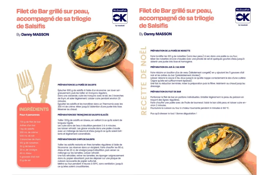 À l’occasion des fêtes de Noël, Nausicaá, Centre National de la Mer, et le programme Mr.Goodfish mettent en lumière une cuisine festive et responsable à travers une recette inédite. Imaginée par Danny MASSON, chef cuisinier à Nausicaá, cette création met à l’honneur des produits de la mer issus de la pêche durable. Au menu : Le filet de bar grillé sur peau, accompagné de sa trilogie de salsifis.