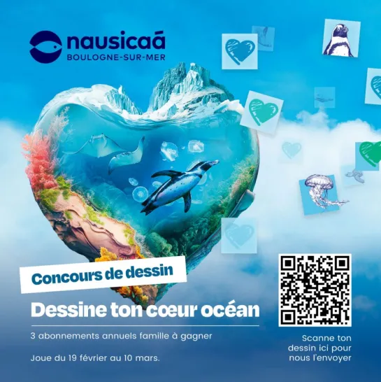 Depuis plus de 30 ans, Nausicaá fait découvrir au grand public le milieu marin et l’incroyable biodiversité qu’il abrite. Les visiteurs peuvent s’émerveiller devant la beauté de l’univers marin, comprendre les enjeux environnementaux, et surtout, apprendre à aimer et à protéger l'Océan. Durant les vacances de février, Nausicaá invite ses visiteurs à révéler la part d’Océan de chacun à travers des animations, des ateliers, et un concours de dessin.