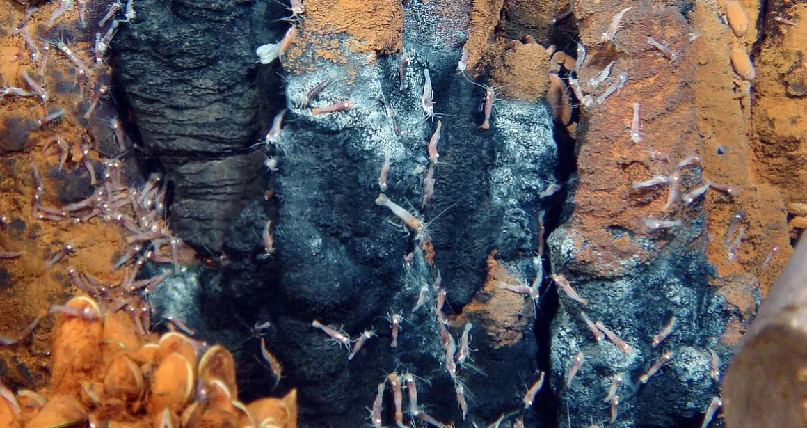 A certains endroits des abysses, on trouve des sources océaniques dont l’eau s’est réchauffée au contact du magma qui brûle à l’intérieur de la terre jusqu’à atteindre les 400°C. Lorsque l’eau jaillit, les minéraux contenus dans l’eau créent des cheminées hydrothermales qui attirent des espèces endémiques. Une oasis des grands fonds s’y développe avec des vers géants, des crabes blancs et des poisson fantomatiques – un écosystème qui se développe sans l’énergie du soleil.