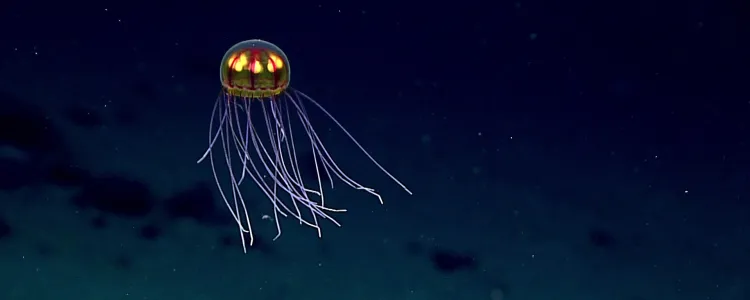 Les conditions de vie dans les profondeurs de l’océan sont extrêmes : pas de lumière, peu de nourriture, une température glaciale et une pression écrasante ! Elles n’empêchent pas la vie de s’y développer : on y trouve des poissons, des bactéries, des méduses, des pieuvres, des requins…