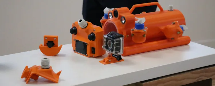 C’est le premier drone sous-marin entièrement imprimé en 3D à base de polymère durable. L’impression 3D permet d’équiper de petites structures à faible coût et de remplacer les pièces à la demande.