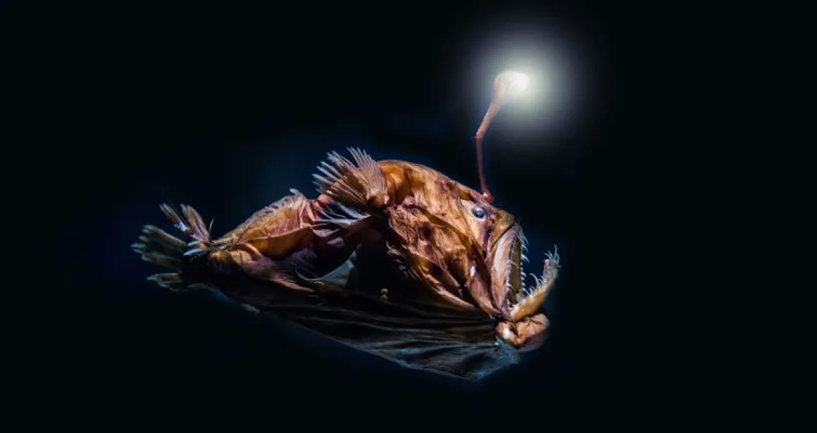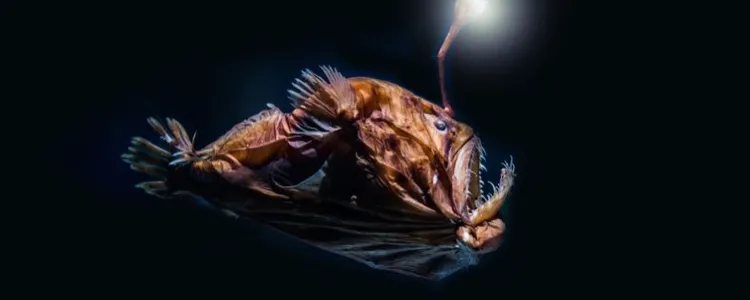 Des dents pointues, un leurre sur la tête pour attraper ses proies, une grande bouche mais un petit corps, la baudroie abyssale, Melanocetus johnsonii, est un poisson de la famille des Melanocetidae, à l’allure effrayante et singulière, que l’on rencontre entre 100 et 4 500 mètres de profondeur dans les océans Pacifique, Atlantique et Indien.
