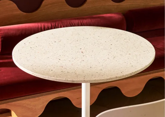 Face à cette situation Ostrea voit le jour, avec l’objectif de donner une seconde vie à ces déchets. Broyées puis assemblées, les coquilles d'huîtres deviennent un matériau composite formidable. Une fois polies, les surfaces révèlent une matière claire, mouchetée, presque minérale façon terrazzo.