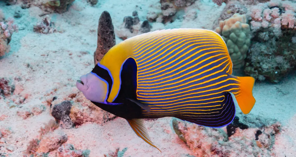 Les poissons des récifs coralliens figurent parmi les animaux les plus colorés de la planète. Leur diversité visuelle est époustouflante : rayures horizontales ou verticales, taches rondes ou en forme d’œil pour éloigner les prédateurs, motifs en selle ou labyrinthiques.