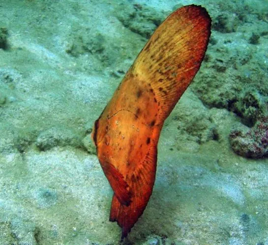 Le poisson chauve-souris Platax orbicularis en est un bon exemple. Au stade juvénile ce poisson ressemble à une feuille flottant à la surface de l’eau.