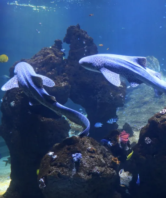 « Parmi les habitants des récifs coralliens, nous retrouvons le requin-zèbre, un requin qui mesure jusqu'à 3,5 m, ce qui est plus grand qu’un requin bouledogue (2 m en moyenne). Mais pourquoi un tel nom pour ce requin ? »