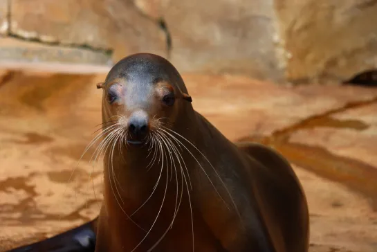Ici à Nausicaá, parmi le groupe des lions de mer, Kai se distingue par ses longues moustaches, ce qui la rend facile à identifier.