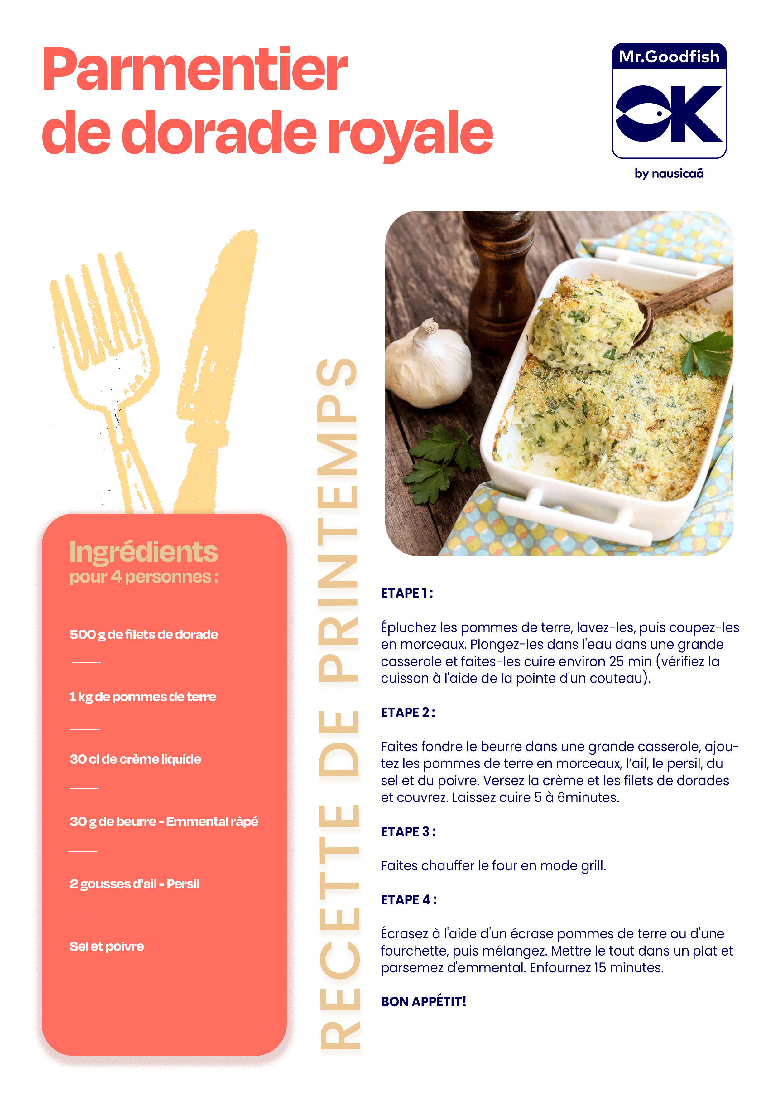 Avec l'arrivée du printemps, nous vous proposons cette recette qui met à l'honneur la dorade royale de Méditerranée, espèce recommandée par le programme Mr.Goodfish pour la saison.