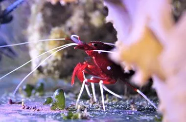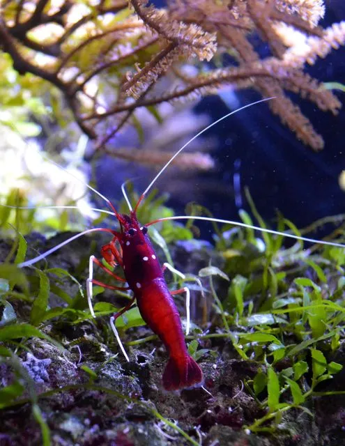 Carnivore et détritivore, cette crevette de 8 cm est hermaphrodite: elle nait mâle puis devient femelle tout en gardant des organes génitaux mâles fonctionnels.