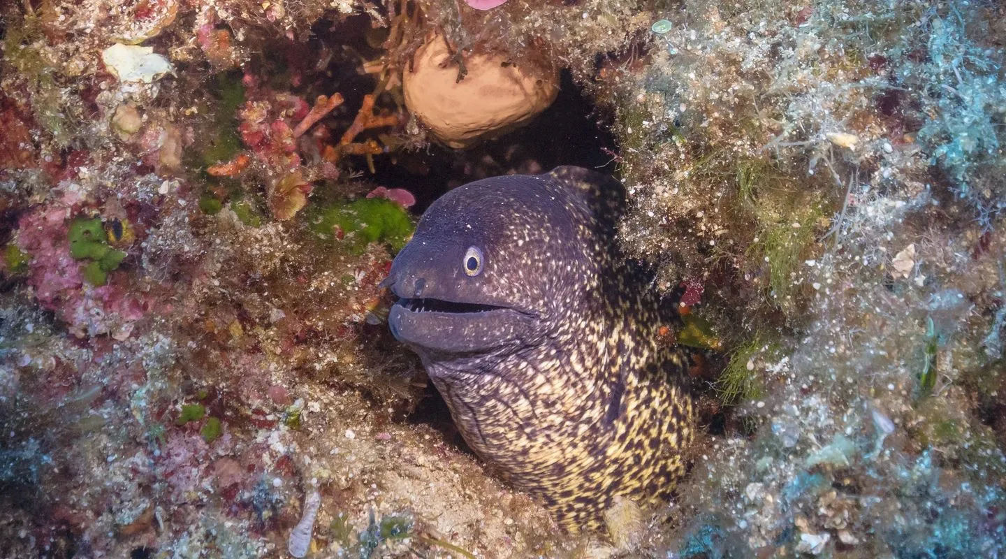 - La murène affectionne particulièrement les épaves qui offrent de nombreuses cachettes.