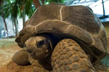 Cette tortue géante porte bien son nom puisqu’elle est la plus grande tortue terrestre.Elle peut mesurer jusqu’à 1,30 mètres de long et selon l’endroit où elle vit, elle peut atteindre de 80 à 150 kg.