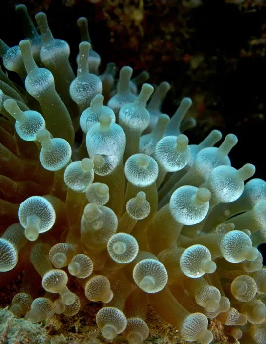 Sans la présence de poissons-clowns dans leurs tentacules, certaines anémones bulles n’ont pas de bouts renflés.