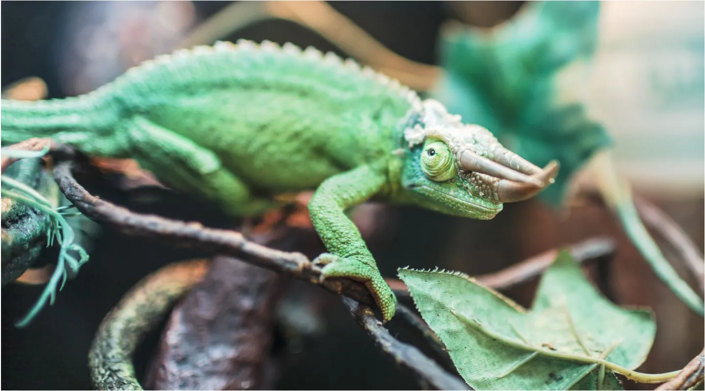 - Ce caméléon montagnard et arboricole qu'on appelle aussi caméléon à trois cornes doit son nom aux saillies frontales qu’il porte sur son front.