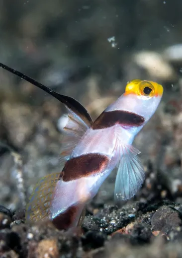 Invertébrés benthiques, petits poissons, œufs de poissons ; filtre le sable avec sa bouche.