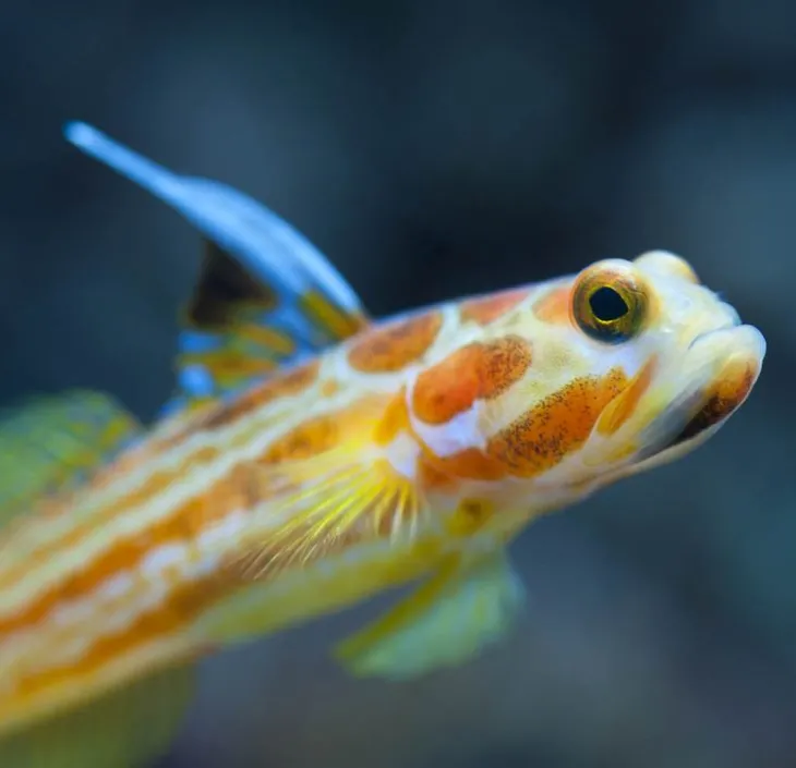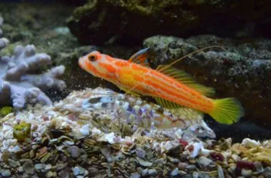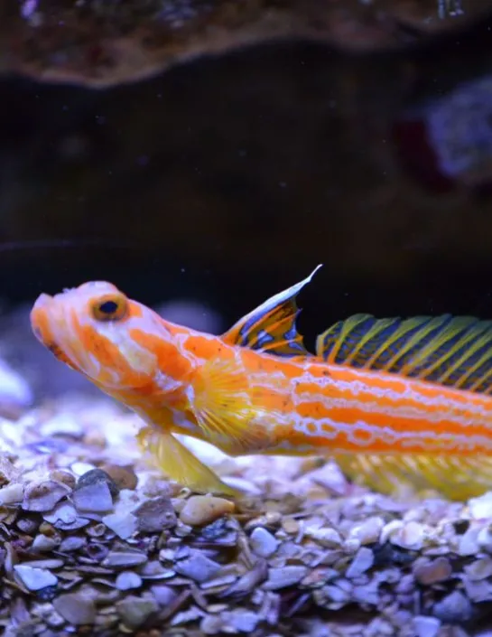 Le gobie à rayures orange vit sur le fond, à proximité du trou sableux qui lui sert de terrier, entre 10 et 40 m de profondeur.