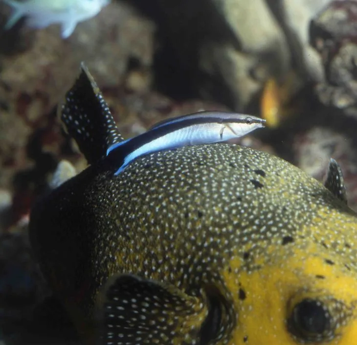Sa livrée et son comportement sont reconnus par les autres poissons qui ne le considèrent pas comme une proie potentielle mais comme un « prestataire de service ».