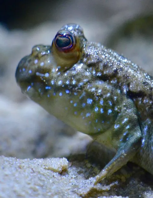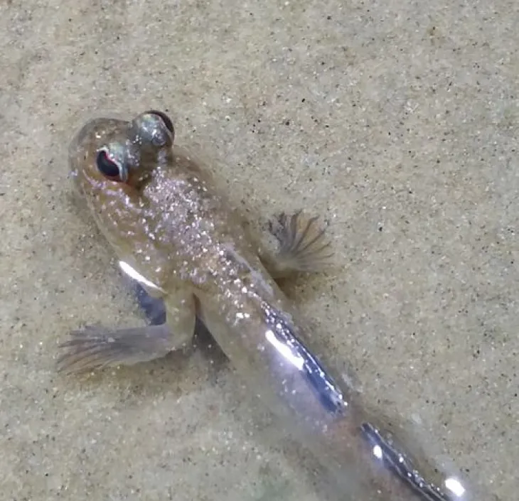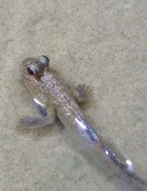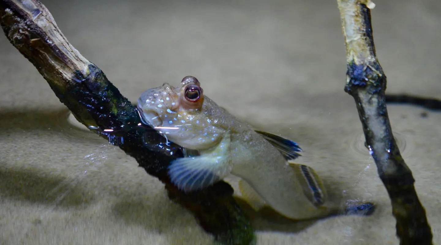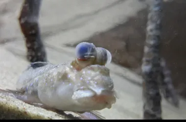 Lorsqu’il est hors de l’eau, le périophthalme cligne des yeux régulièrement.