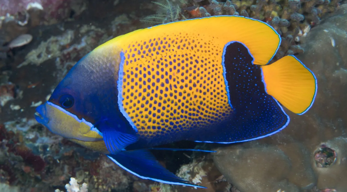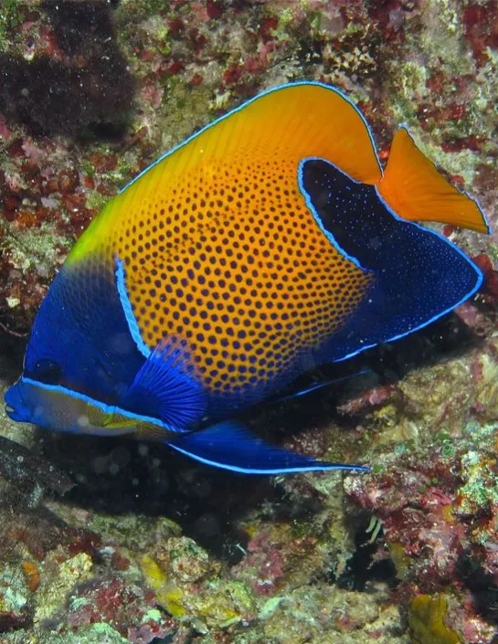 Récifs coralliens riches, lagons clairs, canaux, pentes externes protégées ; profondeur de 3 à 40 m.