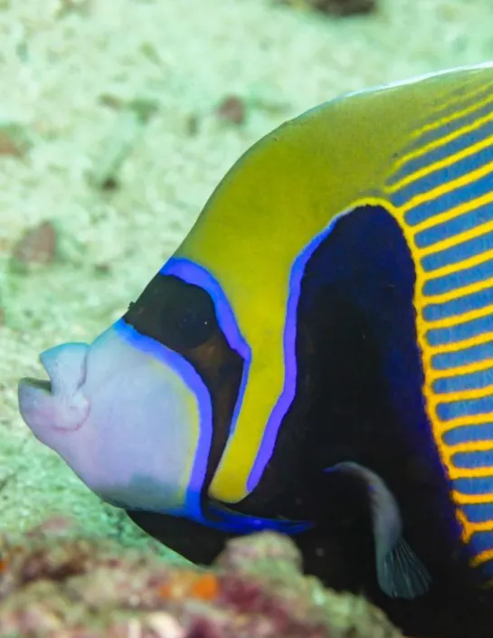 Éponges, tuniciers, organismes encroûtants ; parfois nettoyeur de gros poissons.