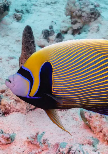 Éponges, ascidies, crevettes, vers, algues ; juvéniles : amphipodes et petits invertébrés.