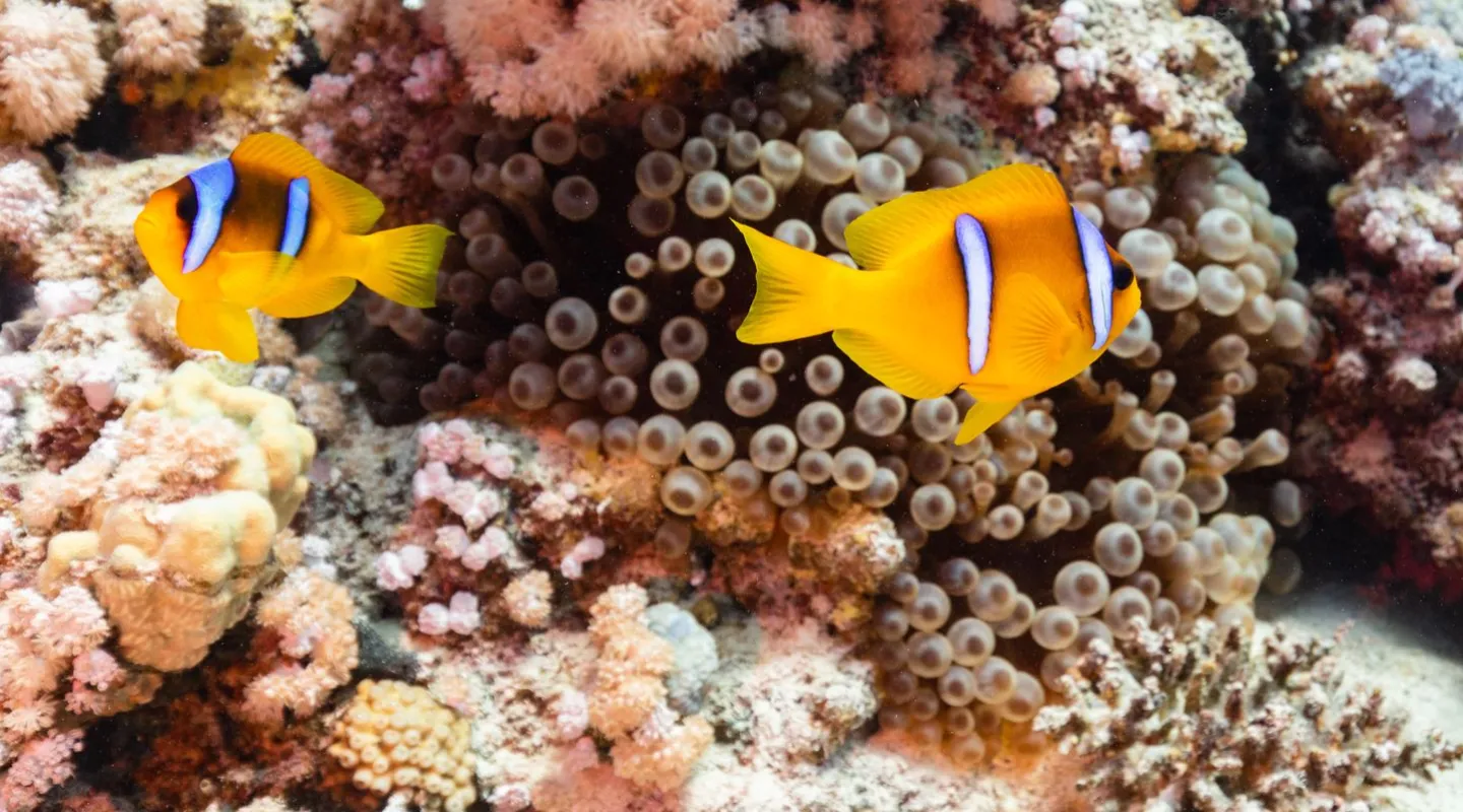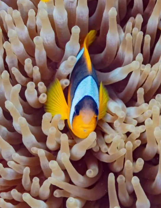 Récifs coralliens peu profonds, souvent en association avec des anémones de mer.