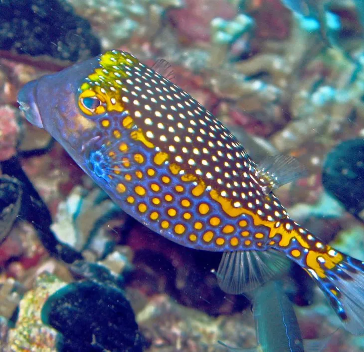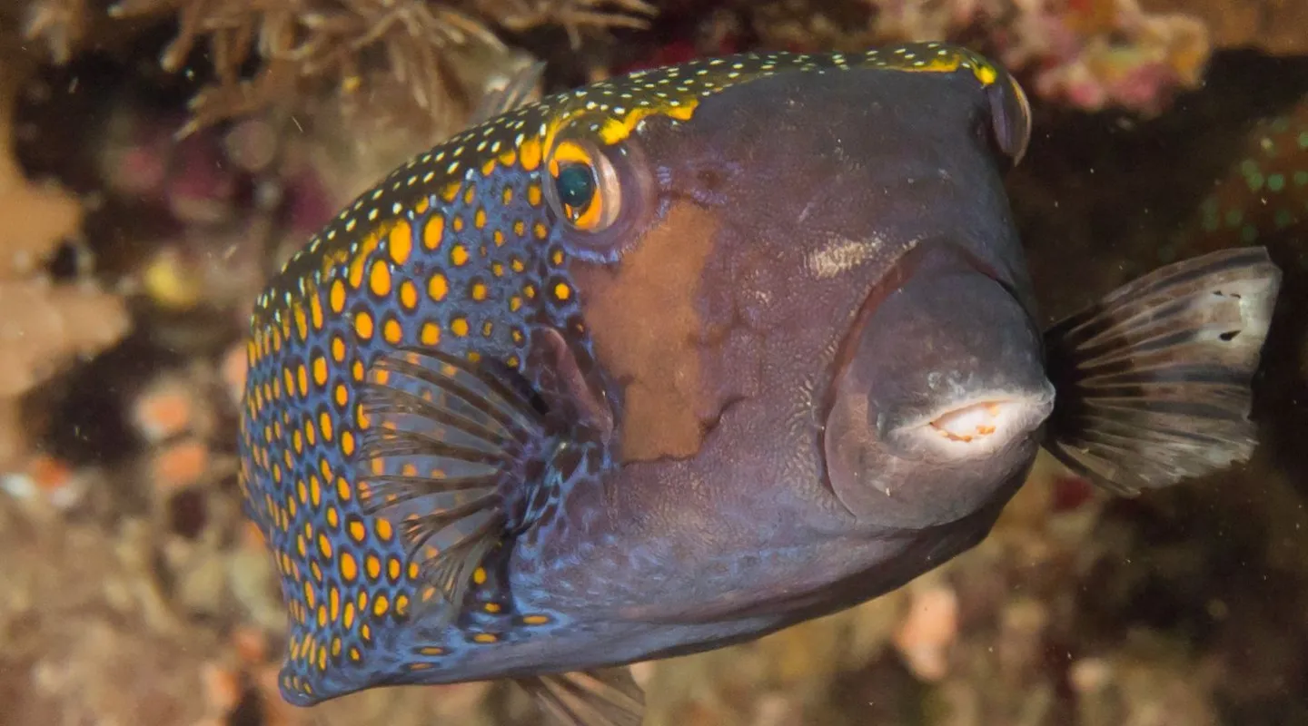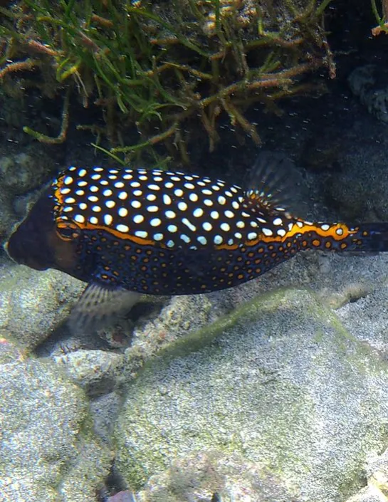 Ce sont ses taches blanches qui lui valent le nom de poisson coffre pintade.