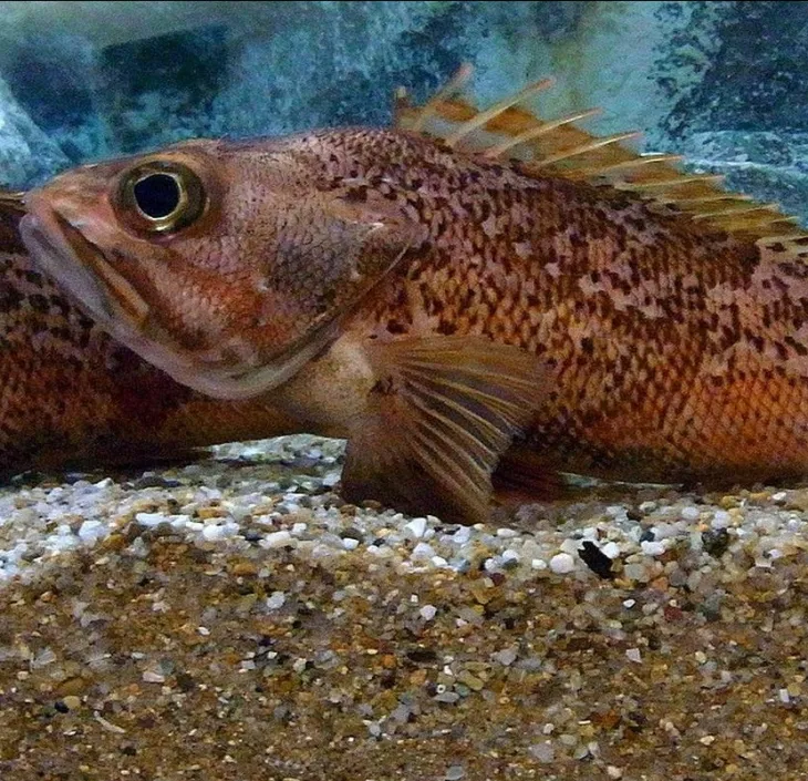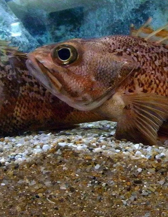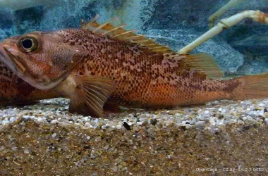 Ce sébaste a un corps allongé et comprimé avec une grande tête est de couleur rouge clair avec des marbrures rouge-orange sur les flancs.