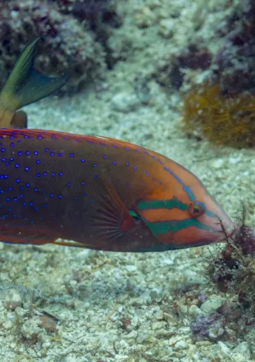 Récifs coralliens, lagons, récifs externes, entre 10 et 25 m de profondeur.