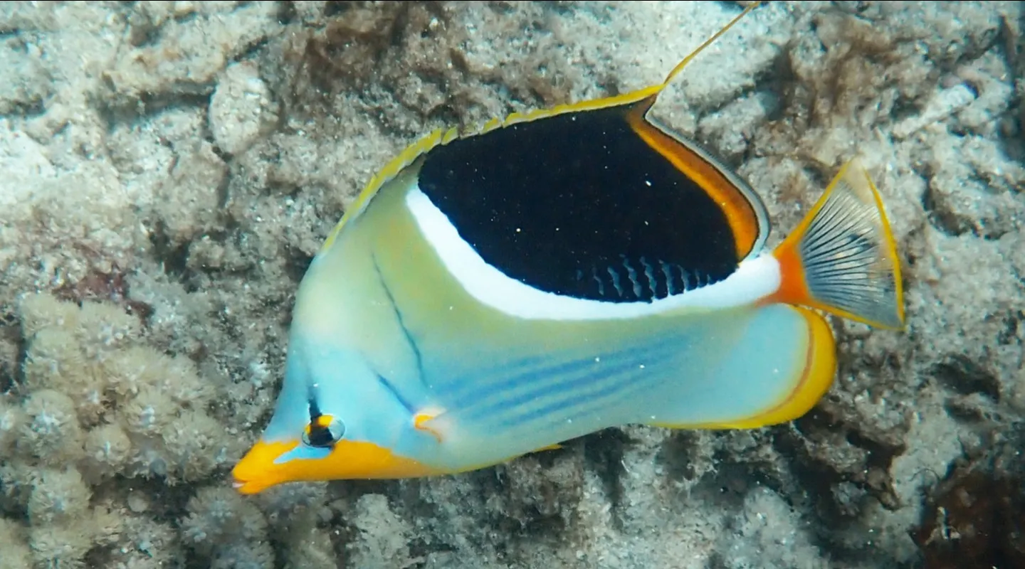 La tache noire à l'arrière de leur corps leur vaut le nom de poisson-papillon à selle noire.