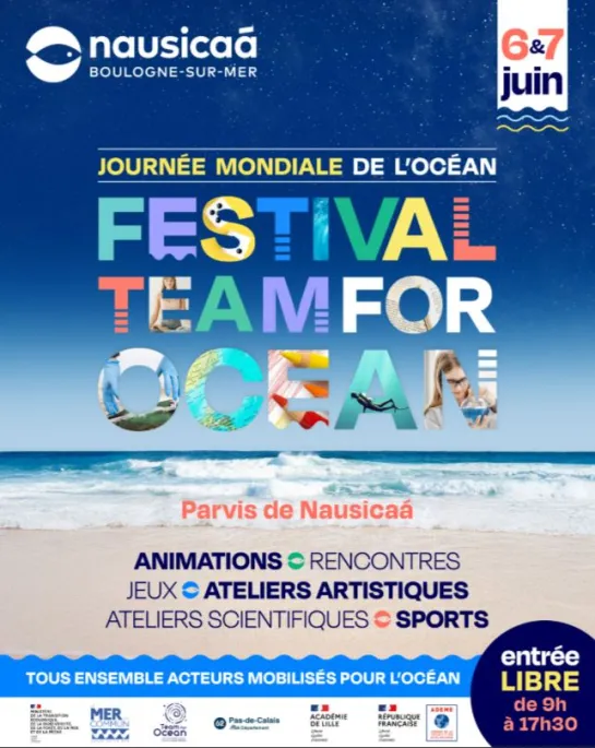 Rendez-vous les 6 et 7 juin, de 9 h 30 à 17 h 30, sur le parvis de Nausicaá pour deux jours dédiés à l'échange, à l'engagement actif et à l'action en faveur de l'Océan !