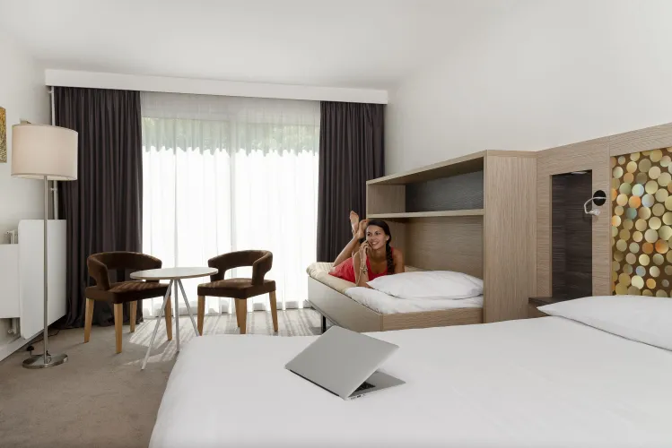 Avec ses 80 chambres et sa suite élégante, l’hôtel est l’adresse idéale pour une escapade à deux, un séjour en famille, un voyage touristique ou un séminaire. Wi-Fi gratuit, piscine extérieure ouverte de mai à septembre, aire de jeux pour enfants et boulodrome : tout est réuni pour allier confort et détente.
