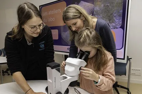 Parents et enfants partagent ensemble un atelier adapté à l'âge de l'enfant : conte, expérimentations au Labo, activités créatives à la Fabrik ou jeu de plateau en famille.