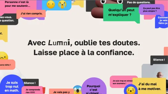 Avec un ton amical, chaleureux, spontané, Lumni est un compagnon, un pote, une relation de confiance. Habillé de couleurs pop, ponctué d’emojis et équipé d’un système de jeu, Lumni est dans l’air du temps afin d’apprendre autrement et en s’amusant.