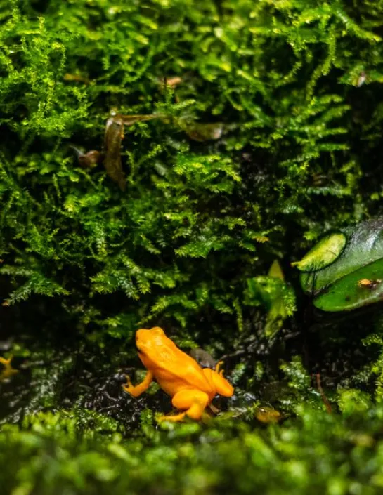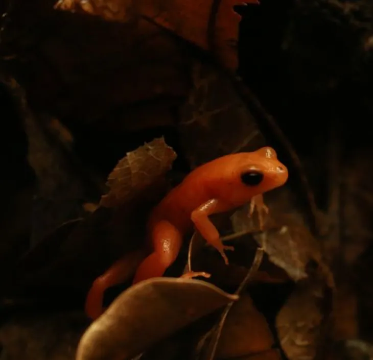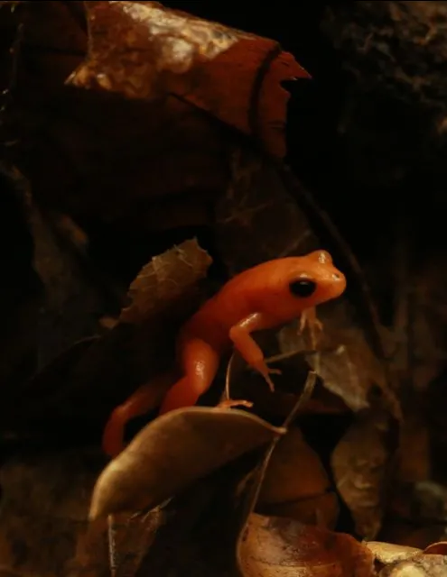 Het gekleurde vel van de gouden mantella's (geel, oranje of rood) dient als signaal voor eventuele vijanden: opgepast, giftig. Ze zijn gewaarschuwd!