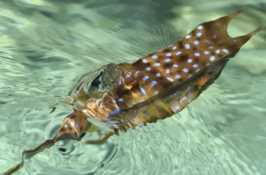 Zijn voeding bestaat uit kleine ongewervelden die op de bodem leven, algen en sponzen.